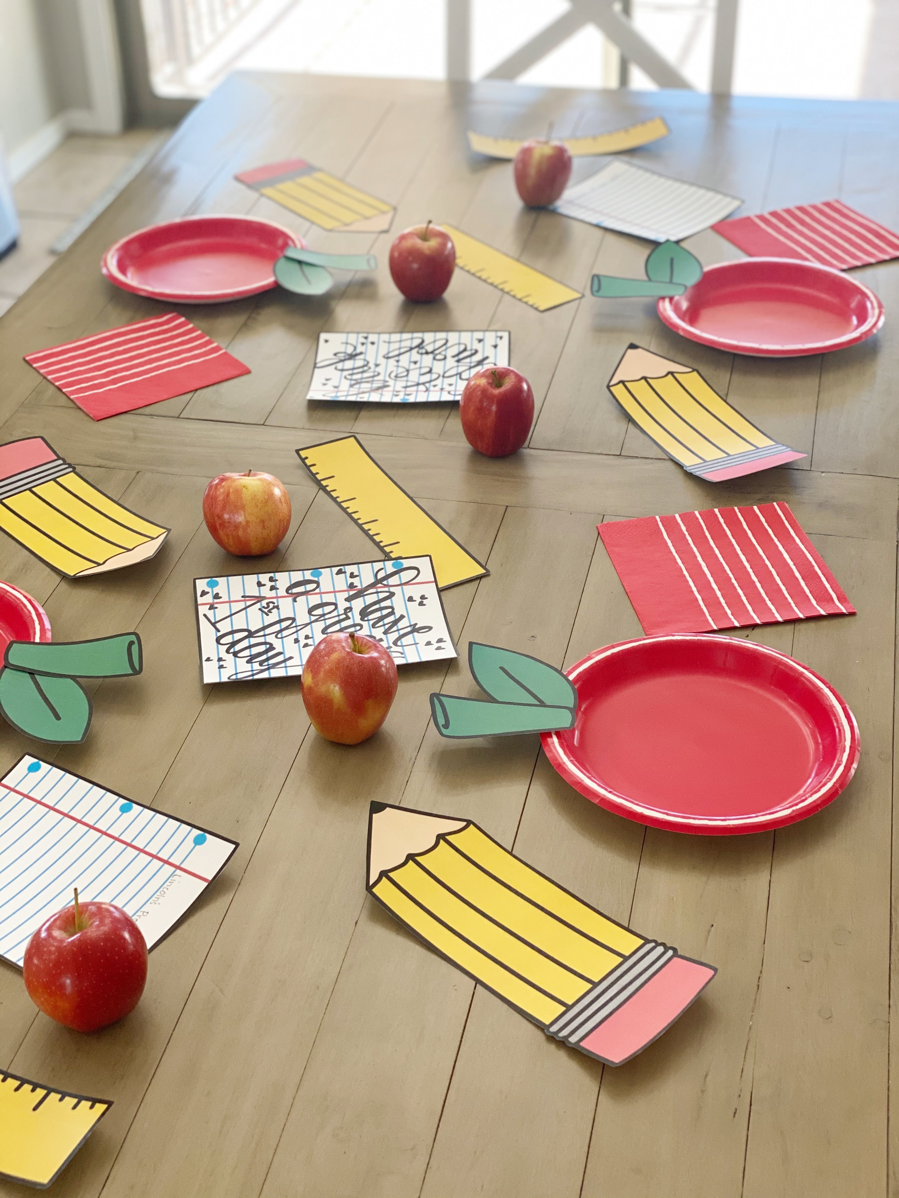 I think the tablescape turned out so cute. I set everything up during nap and quiet rest time, so the kids were super excited when they came down to see everything decorated. Next year, I’ll plan ahead and include a balloon garland too! I wrote little notes on two of the printed paper sheets and wrote “Brynlee’s 2nd Grade Goals” and “Lincoln’s Preschool Goals” on the other two for them to fill out at dinner.