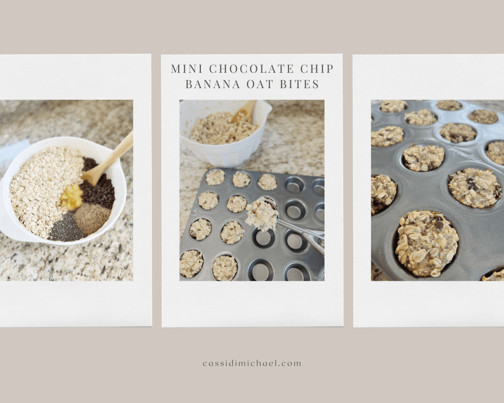 In addition to your ingredients, I highly recommend a nonstick mini muffin pan, mine is from pampered chef, but I also own and love pans from this company too! A cookie scoop to fill your muffin tins perfectly every time comes in handy too, but a regular spoon works just as well! These bites do not rise, so fill to the brim with batter.